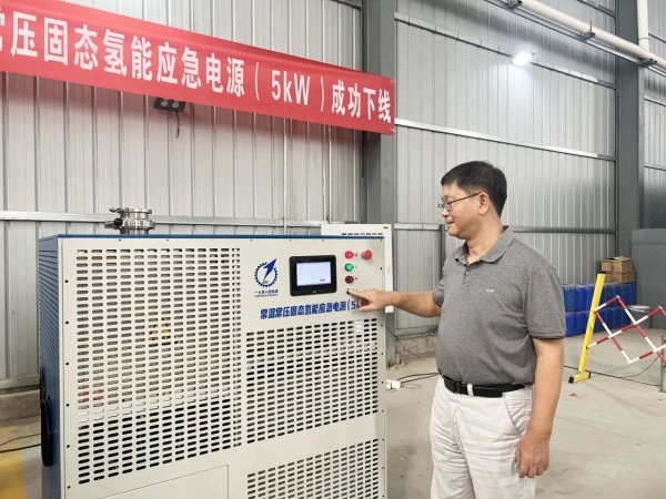 8月27日:样机通过严格评审,公司负责人成永红教授现场启动设备,标志着全国首套常温常压固态氢能应急电源(5kW)正式下线。