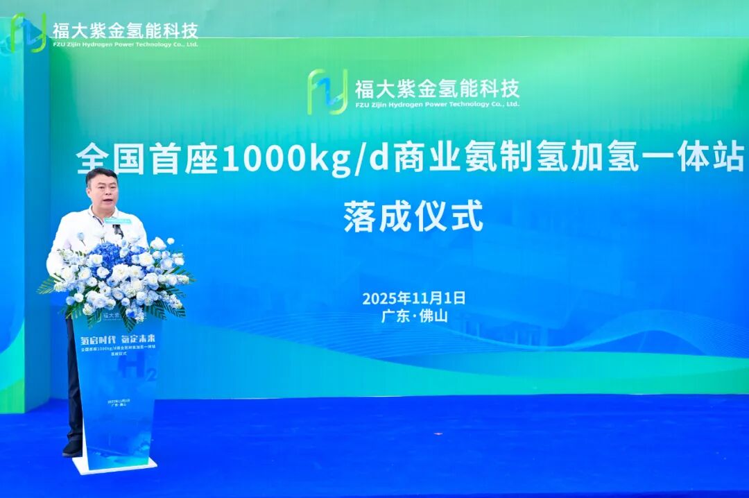 11月1日,由福大紫金氢能科技股份有限公司自主设计、建设并运营的全国首座1000kg/d商业氨制氢加氢一体站在佛山市南海区正式落成
