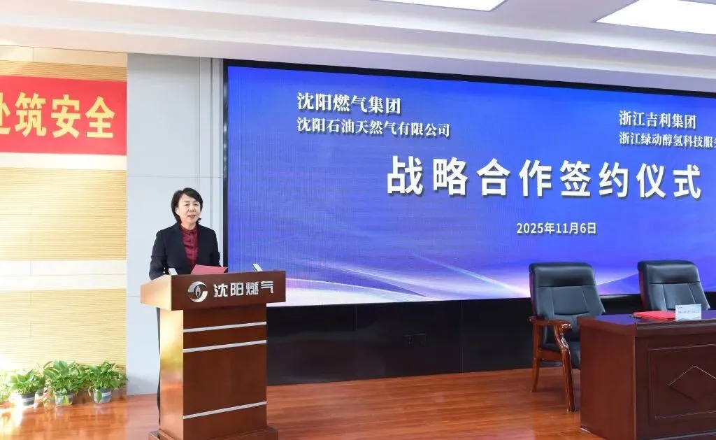 2025年11月6日,沈阳燃气集团有限公司下属沈阳石油天然气有限公司与吉利汽车集团有限公司下属浙江绿动醇氢科技服务有限公司,在沈阳举行签约仪式,正式启动胜利甲醇加注站改造工程。自此甲醇汽车加注项目在沈阳正式落地,标志着沈阳燃气与吉利公司两大集团新能源战略合作正式开始,也标志着沈阳市新能源项目的多元发展开启了新篇章,该项目的落地实施对于沈阳市能源结构转型调整,构建绿色低碳现代能源体系将起到积极的推动作用。