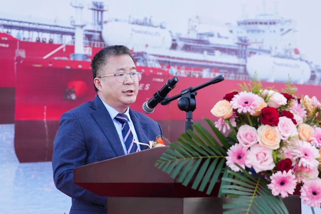高文宝表示,此次命名的两艘新船,是公司在高端清洁能源运输装备领域的重要技术突破,更是与船东Exmar集团精诚协作的结晶,从需求定制到技术沟通,双方始终秉持合作共赢初心,携手推动项目高质量落地;同时,启东市委市政府长期以来提供的最优营商环境与要素保障,也让企业深切感受到温暖有力的“启东温度”;此外,LR船级社的专业认证,以及海事、海关、边检等相关部门的悉心指导,都为项目顺利推进保驾护航。