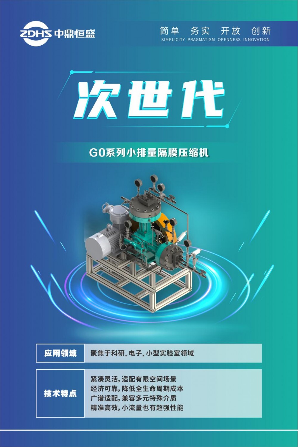 G0系列的成功研制,突破了传统隔膜压缩机“大而全”的设计定式,开创了“小而精”的新型产品范式。该产品不仅填补了微小流量高端应用领域的产品空白,更将隔膜压缩机的应用范围由工业级场景拓展至家用氢能充装、精密电子制造、科研实验等多个领域,为国产高端装备在细分领域的技术突破提供了示范案例。
