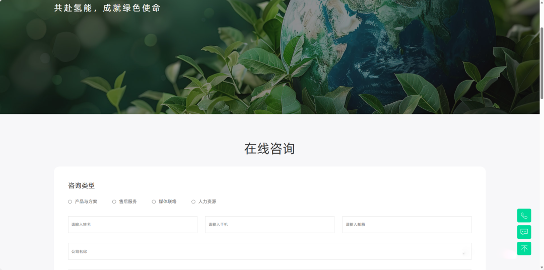 告别沉闷旧版!新官网把“氢电共生”的科技美学焊在页面上!以氢晨品牌标志性冷色调为基底,注入活力新色,把“清洁、科技、可持续”的内核藏进每一处视觉细节。页面设计秉持简约原则,轻量化设计兼顾专业感与亲和力,一眼就能get到“氢能改变未来”的力量感!