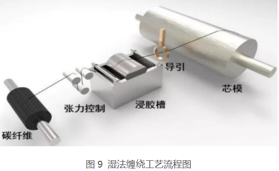 湿法缠绕工艺是将碳纤维丝束在特定浸胶装置中浸渍处理后,再在张力控制下直接缠绕到芯模上,最后经过固化的成型方法。其优点主要如下: