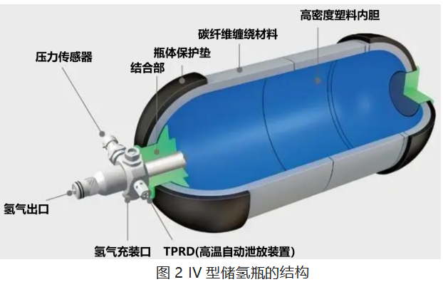 塑料内胆的全复合材料气瓶( Ⅳ型瓶) ,采用高分子材料做内胆,碳纤维复合材料缠绕作为承力层,储氢质量比可达 6%以上,最高能达到7%,进而成本可以进一步降低。