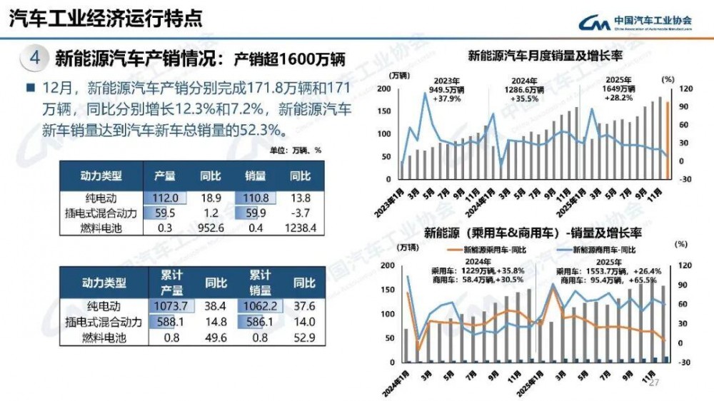 1月14日,中国汽车工业协会公布2025年12月汽车工业产销情况。