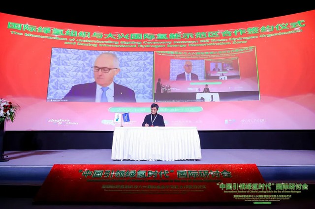 国际绿氢组织荣誉主席Hon. Malcolm Turnbull发表《全球绿氢发展态势》的主题演讲,提到:“在世界面临的应对气候变化的关键时刻,风险已经达到了不能再高的程度。中国是释放绿色氢能源潜力的关键,这对于钢铁、水泥、化肥、公路运输、航运和航空等行业消除化石燃料至关重要。中国作为可再生能源和绿色氢技术的领先者,对发展国际绿色氢产业至关重要。我很高兴今天国际公司正在与中国同行建立联系,将市场推向全球。”