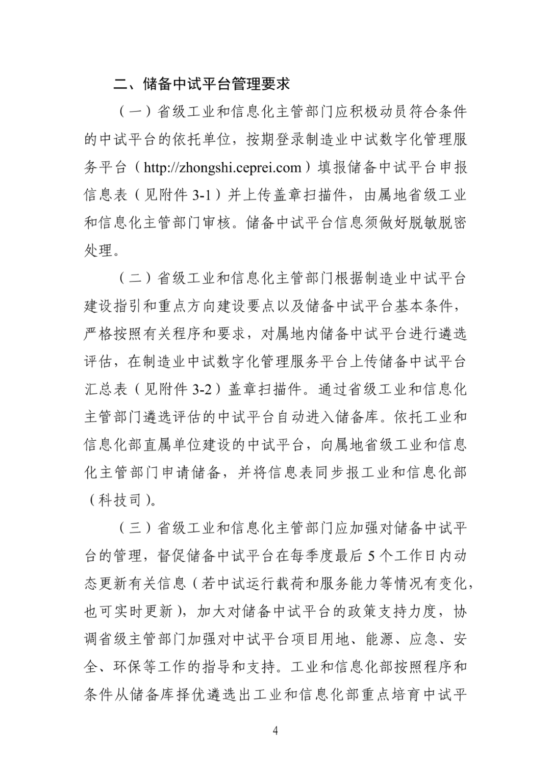 (二)各地工业和信息化主管部门于每年6月、12月最后5个工作日内将属地内储备中试平台名单动态调整情况、制造业中试平台激活情况信息表(附件4)和补齐情况信息表(附件5),在制造业中试数字化管理服务平台填报并上传盖章扫描件。