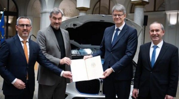 宝马的Joachim Post博士在柏林接受德国和巴伐利亚部长颁发的HyPowerDrive资助证书。