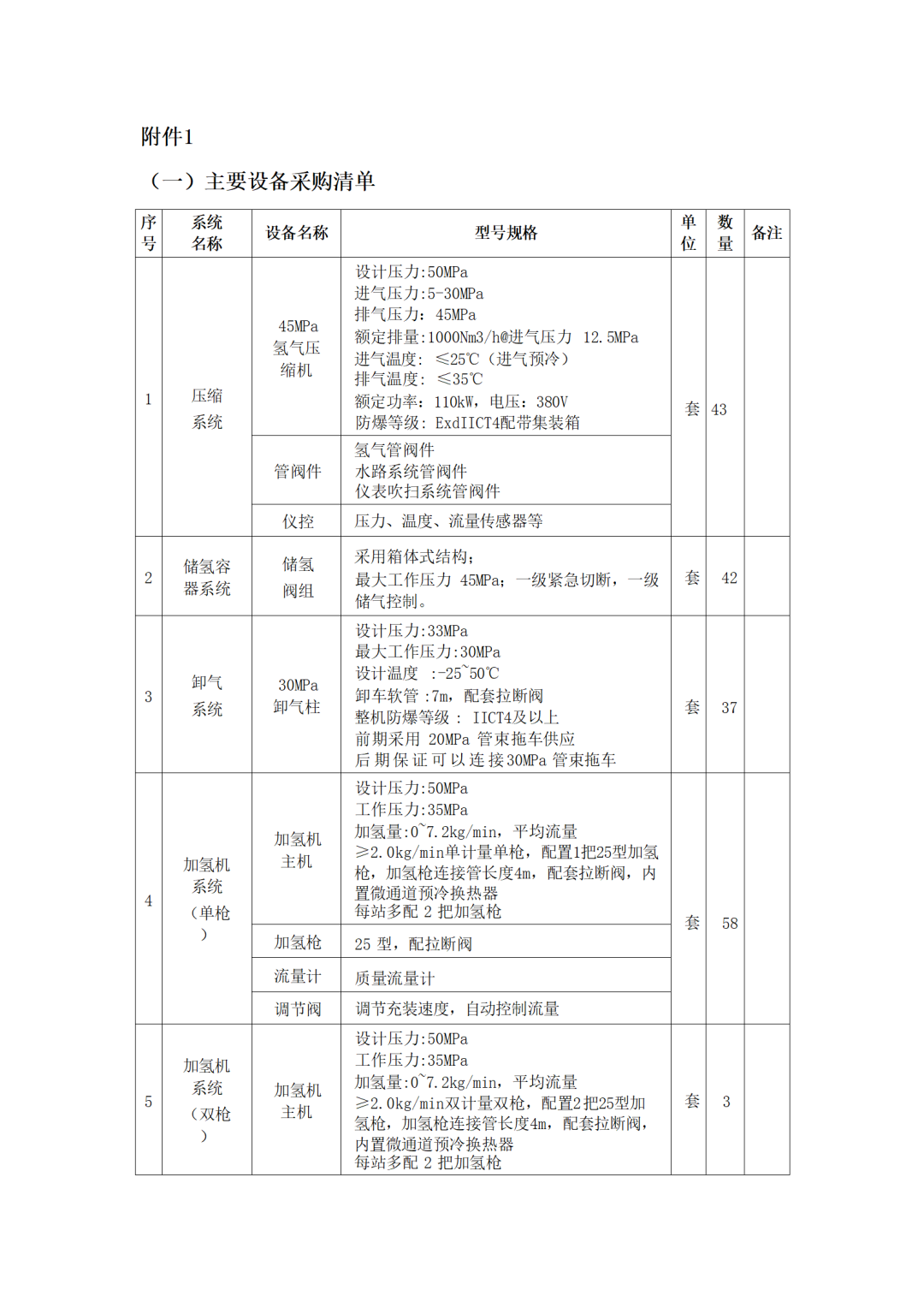 成套设施边界氢气压力满足1.4MPaG;