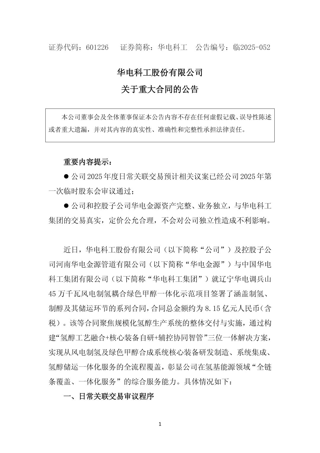 12月19日晚间,华电科工股份有限公司(简称:华电科工)发布关于重大合同的公告。