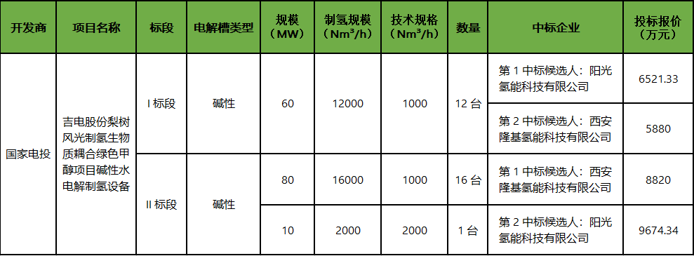 12月23日,国家电力投资集团有限公司二〇二五年度第 87 批集中招标(吉电股份梨树风光制绿氢生物质耦合绿色甲醇项目碱性水电解制氢设备)招标中标候选人公示。