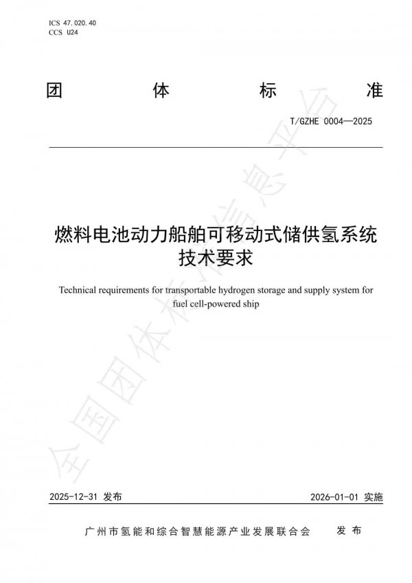 《燃料电池动力船舶可移动式储供氢系统技术要求》T/GZHE 0003—2025