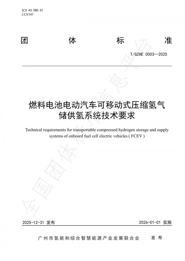 《燃料电池电动汽车可移动式压缩氢气储供氢系统技术要求》T/GZHE 0003—2025
