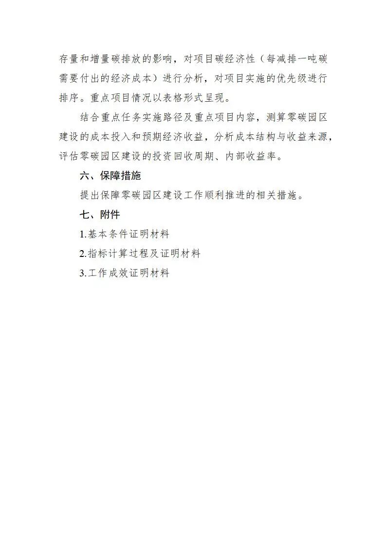 (三)强化保障、多维推动。加强政策、资金、技术和要素保障,持续推进重点任务、重大项目落实落地。鼓励各类市场主体参与零碳园区建设,推动形成多方共建格局。