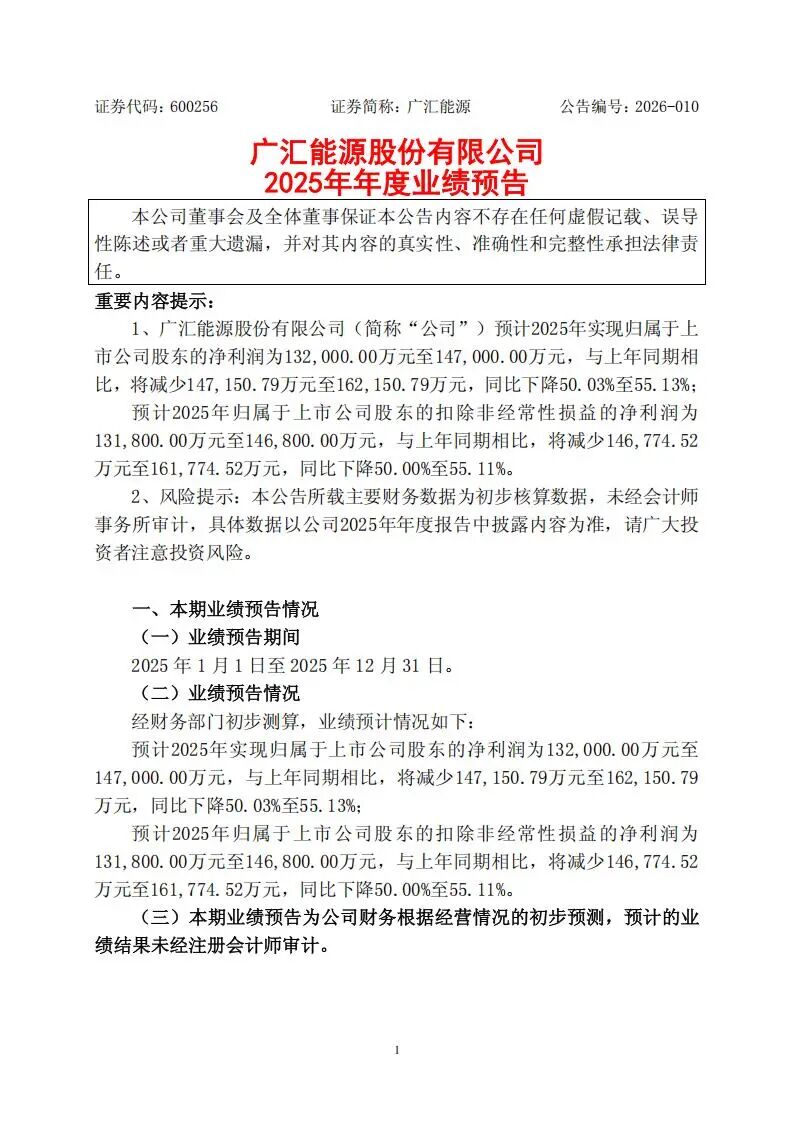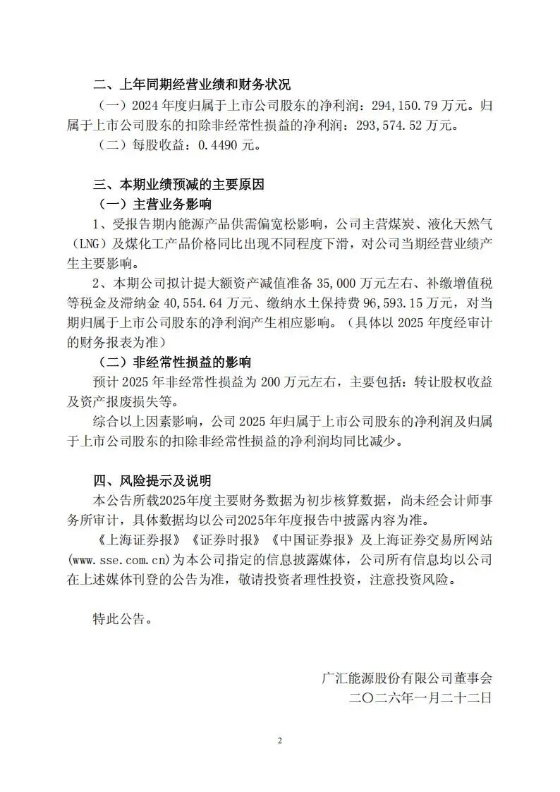 1月22日,广汇能源股份有限公司(简称:广汇能源)发布2025年年度业绩预告。