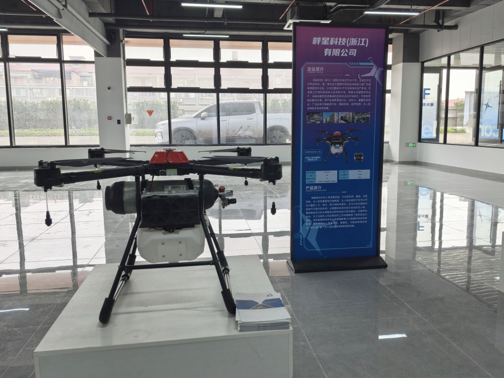 展会现场,“畔星科技”展出的氢燃料电池无人机凭借卓越性能吸引了众多目光。该产品搭载企业自主研发的氢燃料电池系统,相较传统动力无人机,具备续航时间长、环境适应性强、绿色零排放等核心优势,契合低空经济绿色、高效的发展需求。