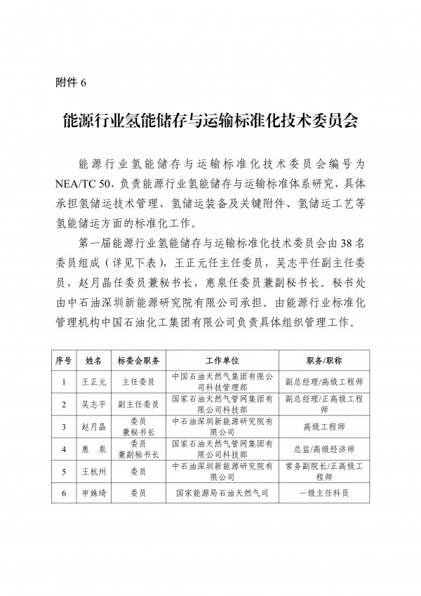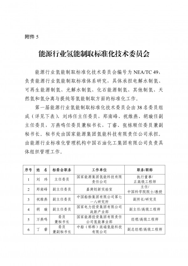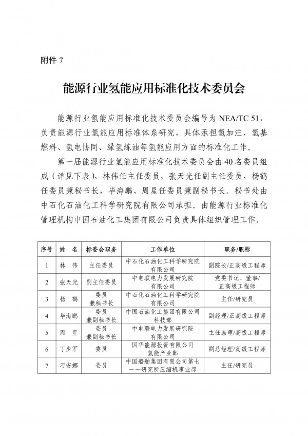 在这7个新成立的标准化技术组织中,氢能领域独占四席,分别为能源行业氢能基础与通用标准化技术委员会、能源行业氢能制取标准化技术委员会、能源行业氢能储存与运输标准化技术委员会、能源行业氢能应用标准化技术委员会。