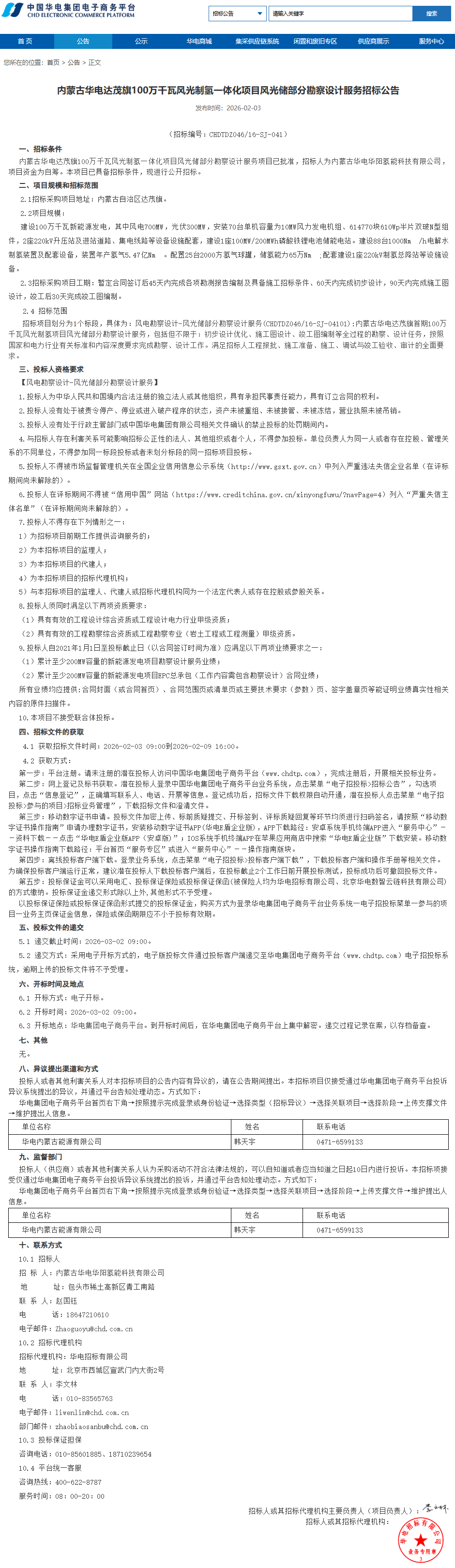 2026-02-06 来源:中国华电集团电子商务平台 浏览数:1