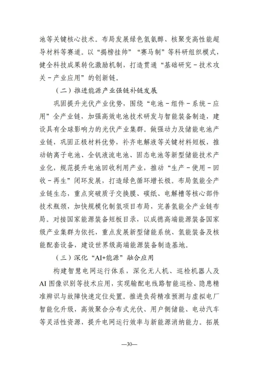 对接国家能源装备短板目录,以成德高端能源装备国家级产业集群为依托,重点发展新型储能系统、氢能装备及核能配套设备,建设世界级高端能源装备制造基地。