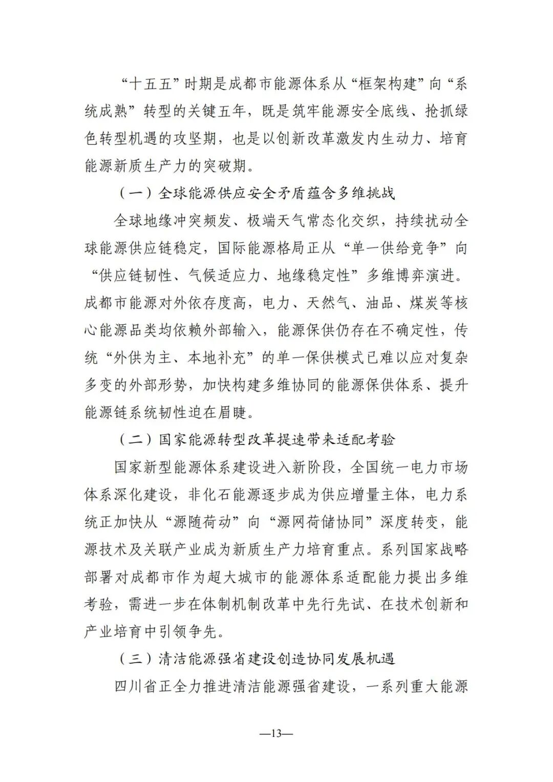 3月25日,成都市经济和信息化局发布关于公开征求《成都市“十五五”能源发展规划(征求意见稿)》意见建议的公告。