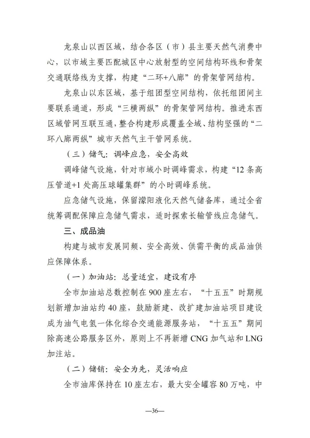 全市加油站总数控制在900座左右,“十五五”时期规划新增加油站约40座,鼓励新建、改扩建加油站项目建设成为油气电氢一体化综合交通能源服务站,“十五五”期间除高速公路服务区外,原则上不再新增CNG加气站和LNG加注站。