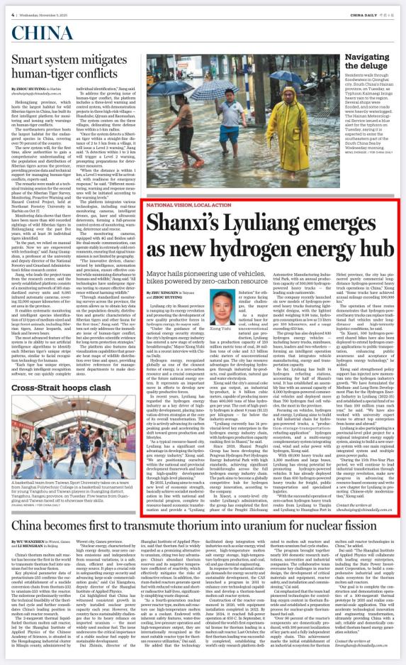 《中国日报》推出“中国式现代化的地方实践”(National Vision, Local Action)高端访谈栏目,讲述中国式现代化建设道路上的地方特色实践。11月5日第4版刊发山西省吕梁市委副书记、市长熊义志的专访文章,讲述吕梁积极培育氢能未来产业,在海内外引起广泛关注。