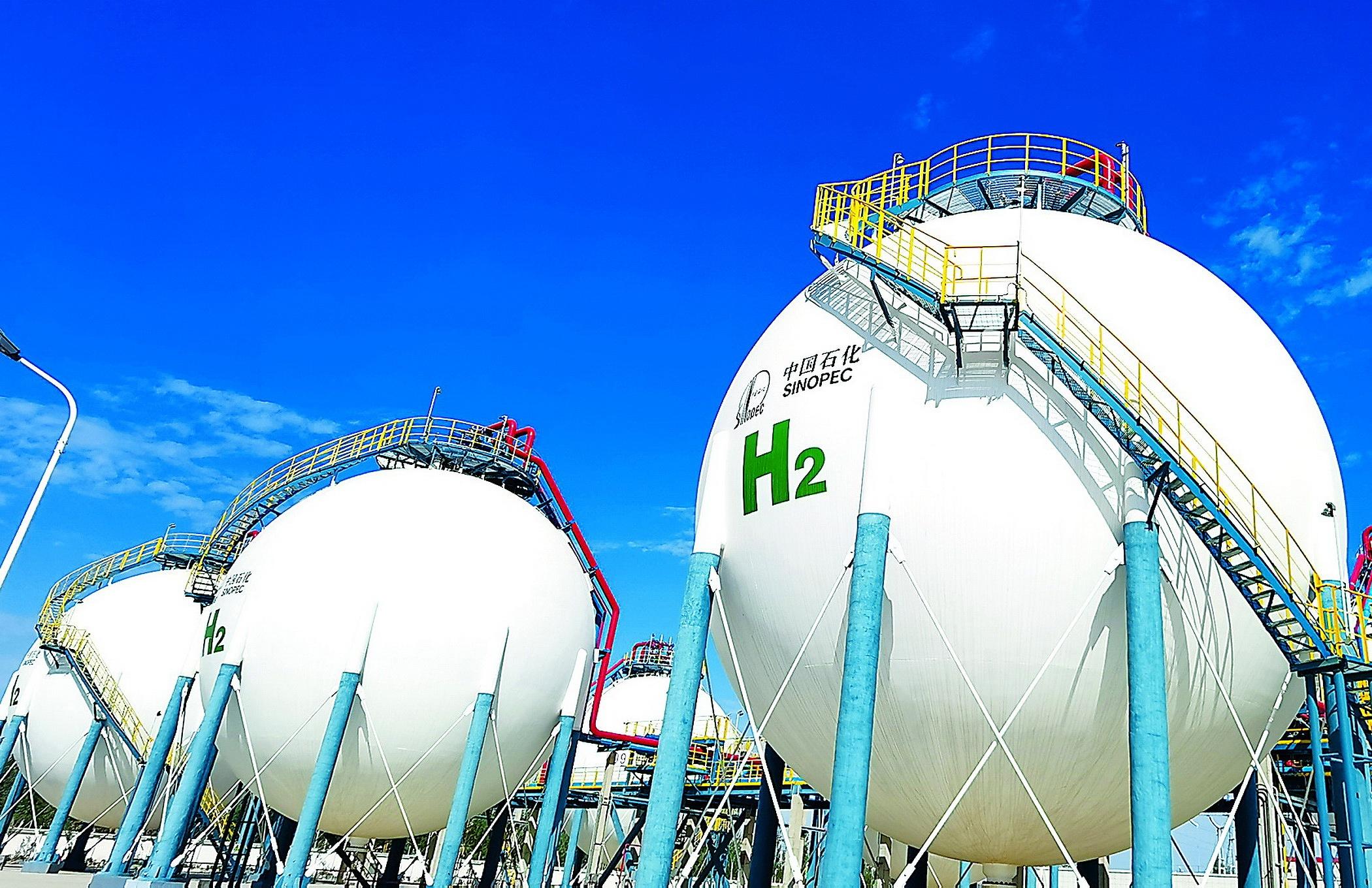 新疆阿克苏,中国石化新疆库车绿氢示范项目储氢罐装置区。视觉中国供图