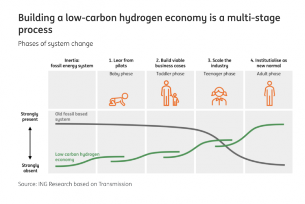 ING将氢能产业的发展比作成长过程。目前行业仍处于“婴儿期”,重点在于通过试点项目验证技术可行性,包括碳捕集、电解制氢、核能制氢、地下天然氢以及降低电解槽对稀有金属的依赖。下一阶段需要证明商业可行性,随后才可能进入规模化扩张阶段。尽管外界曾认为行业正在商业化推进,但现实是,尤其在绿氢领域,产业基本又回到了试点阶段。全球约有1700个清洁氢项目仍停留在规划阶段,推动其进入最终投资决策(FID)将是2026年及之后的重点。