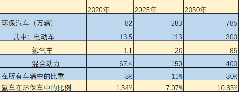 第一个目标是环保汽车国内普及“从2016年末累计24万辆增加到2020年末累计82万辆,增长3.4倍”。其中,燃料电池汽车在新能源汽车中的比例从2020年的1.34%提高到2030年的10.83%。