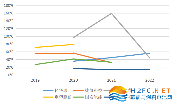 图2:主要氢能企业主营业务毛利率